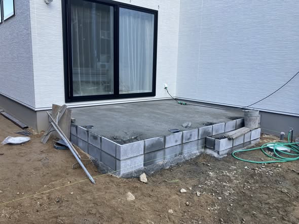 タイルデッキは後付施工の場合、ブロックで造ることが多いです。