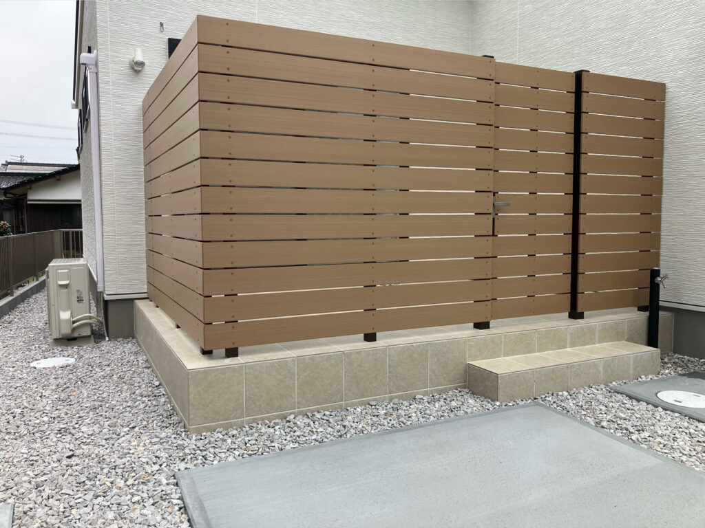 タイルデッキにも樹脂のフェンスで目隠しを設置しています。
